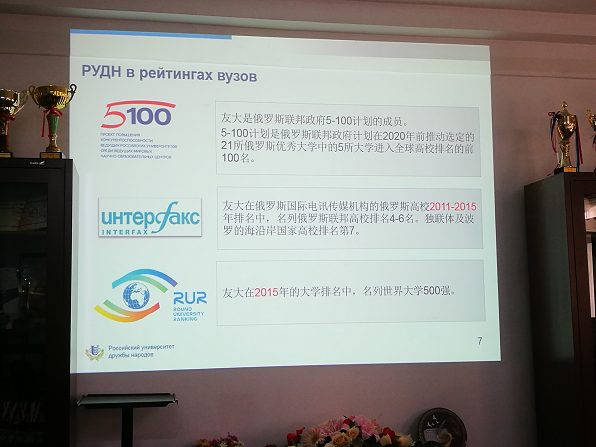 俄罗斯人民友谊大学国际处处长介绍了俄罗斯人民友谊大学的学科建设情况,英文硕士生项目及暑期学校,同时也介绍了该校的基本数据、学校文化及留学生住宿及餐饮情况。赵志毅副院长对来宾表示了欢迎并介绍了今日看料 的基本情况以及参与俄罗斯高校暑期学校及硕士生项目开展情况。李欣欣老师就即将有可能开展的合作项目及相关问题与来宾进行了洽谈。