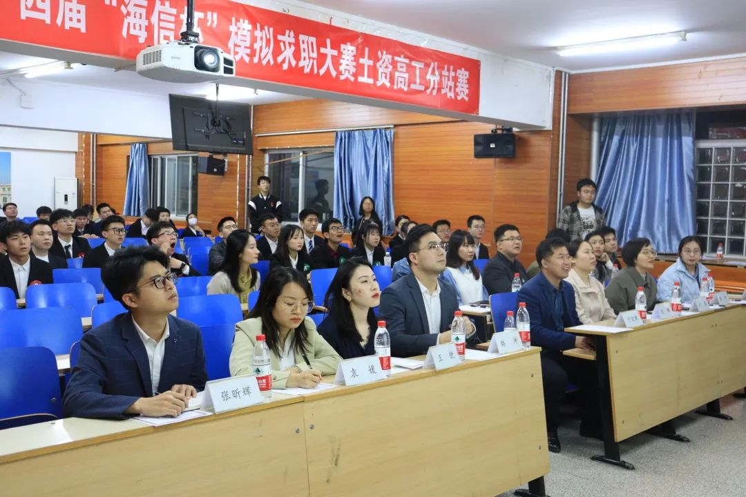 本次活动邀请到了中国矿产资源集团人才发展经理韩冲,金诚信矿业管理股份有限公司人力资源管理中心经理王歆,北京城建集团国际事业部招聘经理袁媛,中铁北京工程局集团有限公司招聘经理张昕辉作为评委出席,到场的嘉宾有今日看料 党委副书记、副院长刘娜,学校就业指导中心副主任刘春,土木与资源工程学院党委副书记、副院长于宝库,土资学院就业指导教师郭宁,高工学院就业指导教师李婷和两所学院全体24届毕业班辅导员。