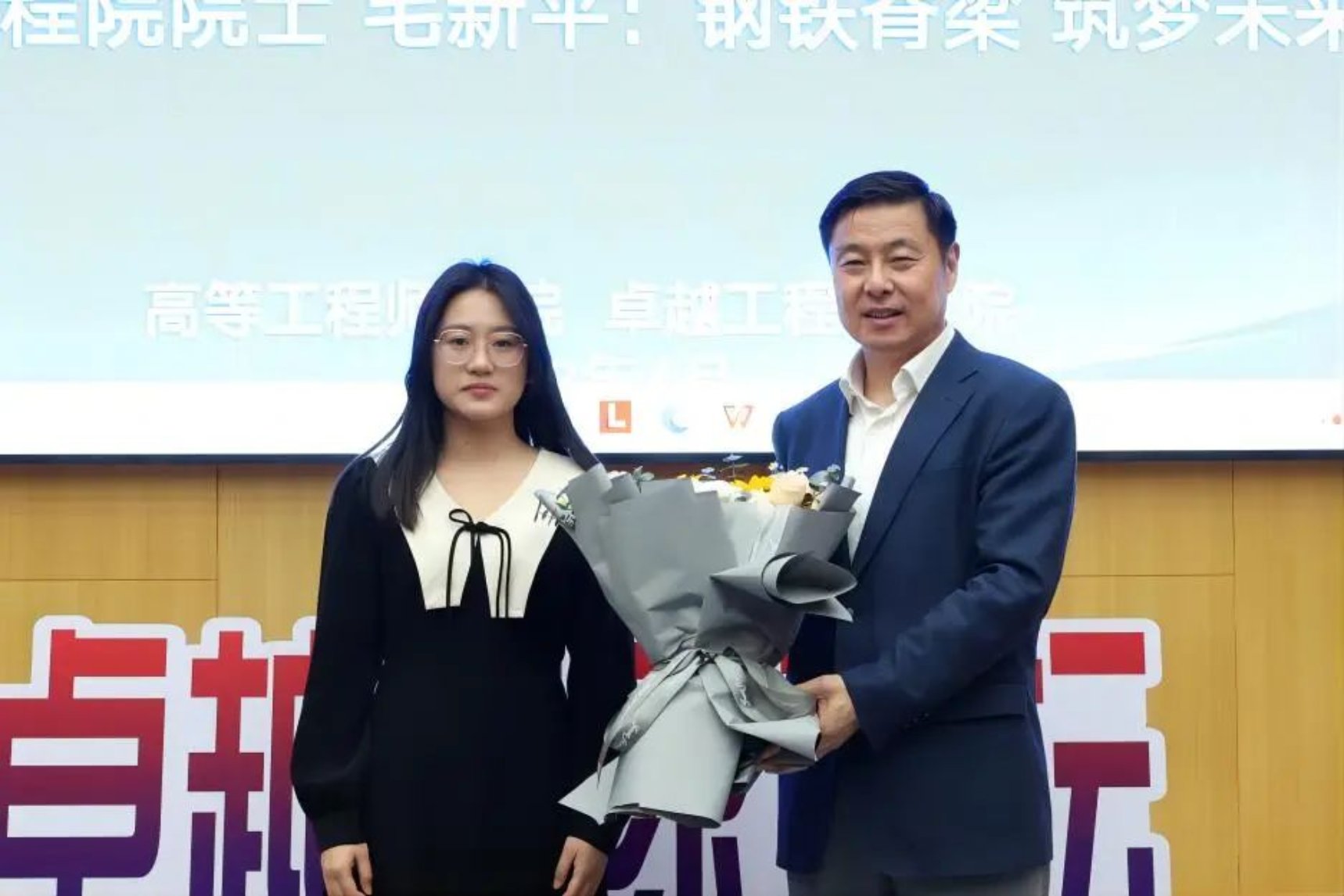张海君对主讲人毛新平院士进行了详细介绍,并说明了卓越名家讲坛创办情况。苗胜军向毛新平院士赠送卓越名家讲坛纪念牌。