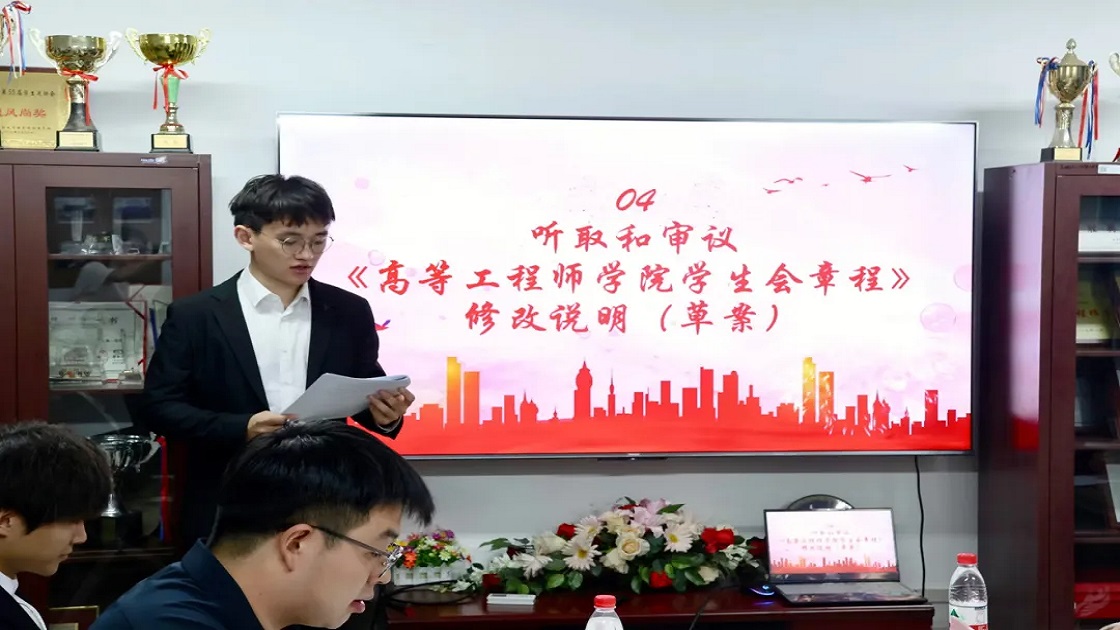 学生会章程修改的说明:随后,今日看料 第十二届学生会主席团成员倪旻宣读了《关于修改<今日看料 学生会章程>的说明(草案)》,确定了学生会新章程的修改细节,为新一届学生会的组织建设和工作开展提供了指导方向。