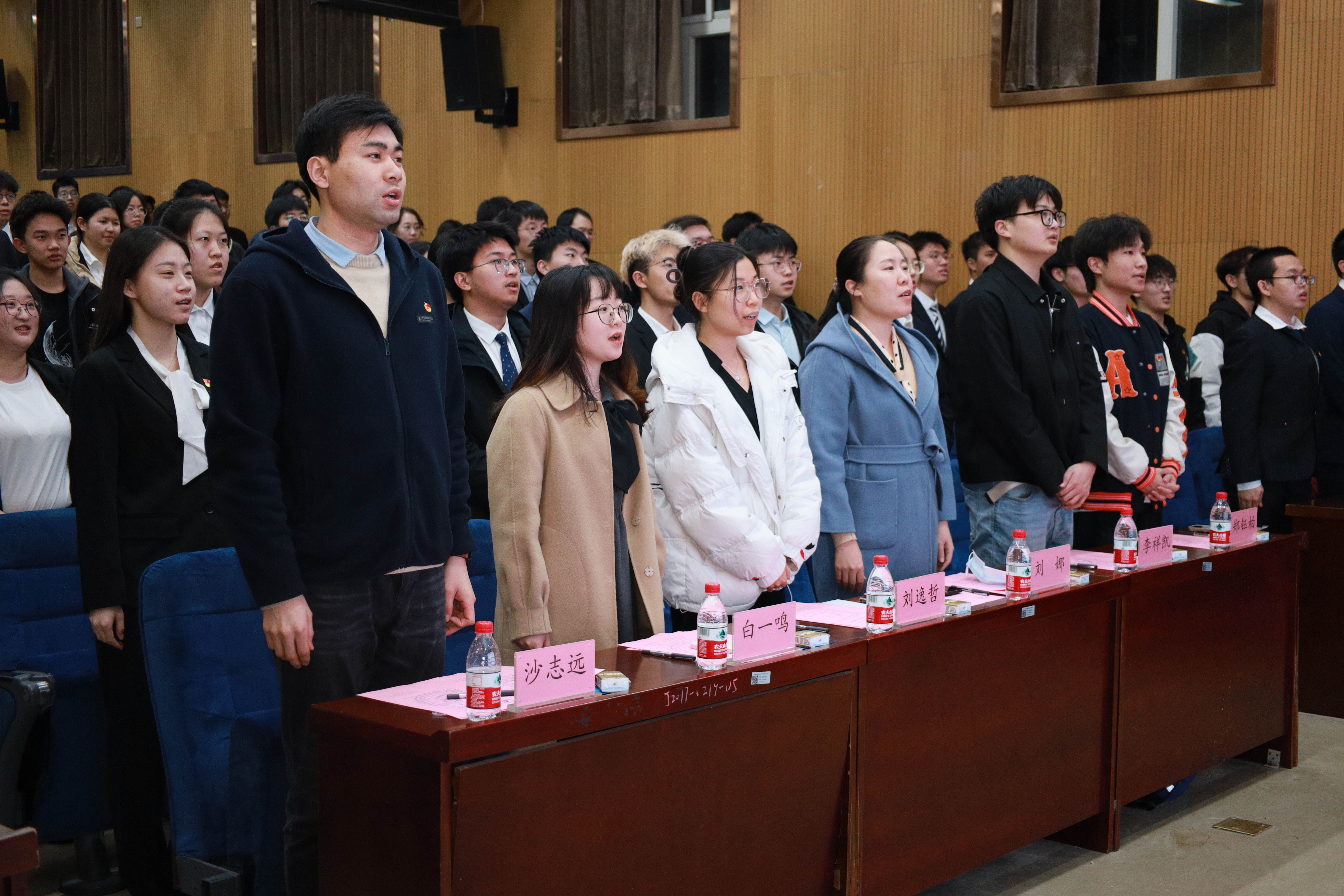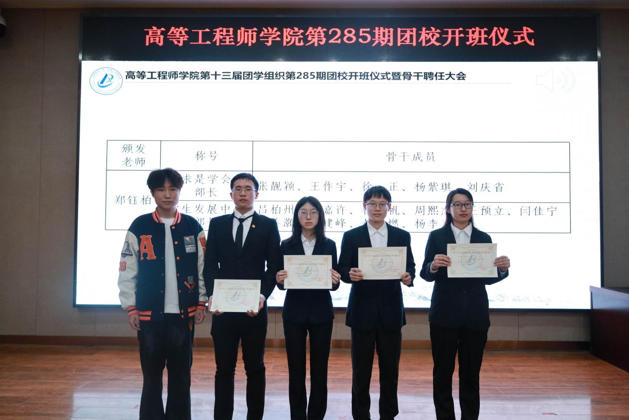 大会第四项,由刘逸哲老师、李祥凯老师、白一鸣老师、沙志远老师、郑钰柏老师为团学骨干们颁发聘书。