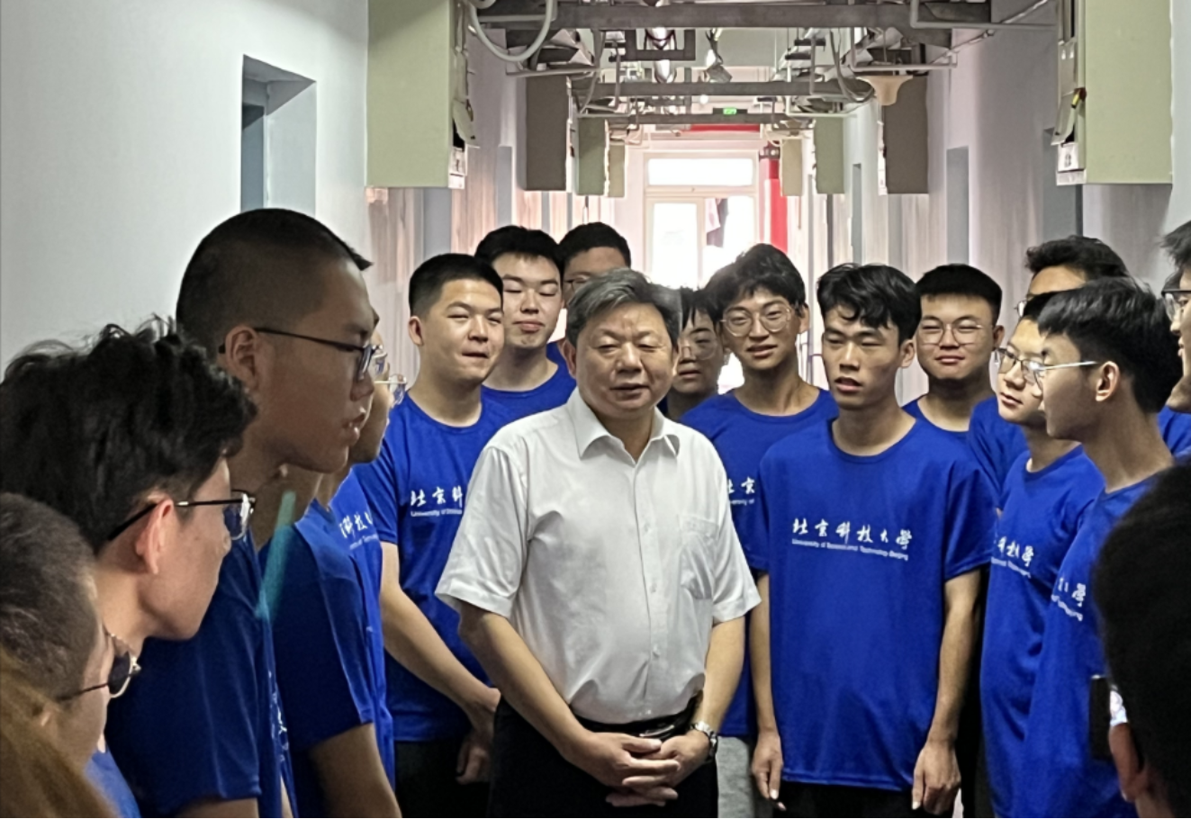 迎新期间,杨仁树校长一行走进11斋学生宿舍看望工科试验班的同学们。杨校长与大家热情交谈,询问了同学们进入大学后的适应情况,并就本科生导师制、宿舍生活等方面进行详细交流。杨校长亲切地对大家说,在宿舍生活时,遇到问题可随时向后勤工作人员反映并寻求帮助,学校一定会尽力解决。同学们对杨校长的到来表示热烈欢迎,并纷纷表示会在未来的学习生活中,乐观向上,积极进取,在北科开启人生新旅程。杨校长还与新生家长面对面交流,就住宿环境、校园生活、学生成长成才等方面与家长们进行坦诚而深入的对话。