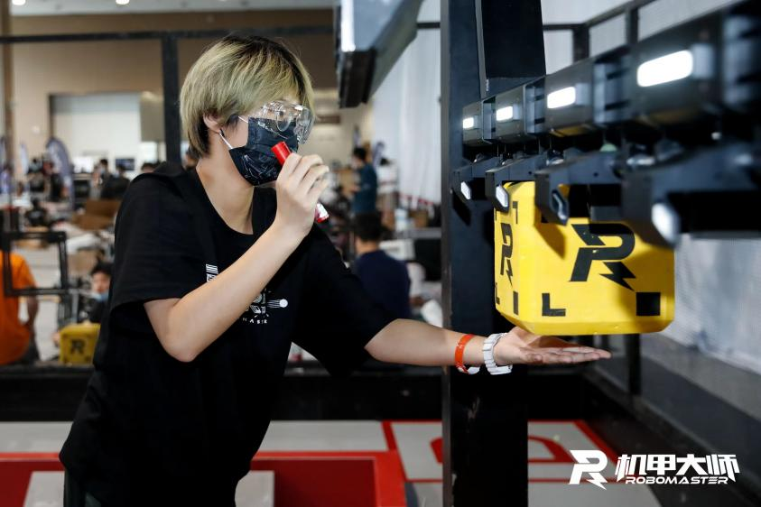 在厦门参加单项赛是我第一次在比赛中戴上了队长袖标,比赛前一天晚上,还状况百出,没有场地道具的我们向华南理工求助了一个小时的道具使用权,适应性训练短暂的时间也出现了新的问题,临上场前还在修改代码,调试机器人的每一个动作指令,直到带着机器人出现在赛场中央,那时我真正感受到了Robomaster比赛的魅力,也期待更多学弟学妹可以加入到高工312实验室。