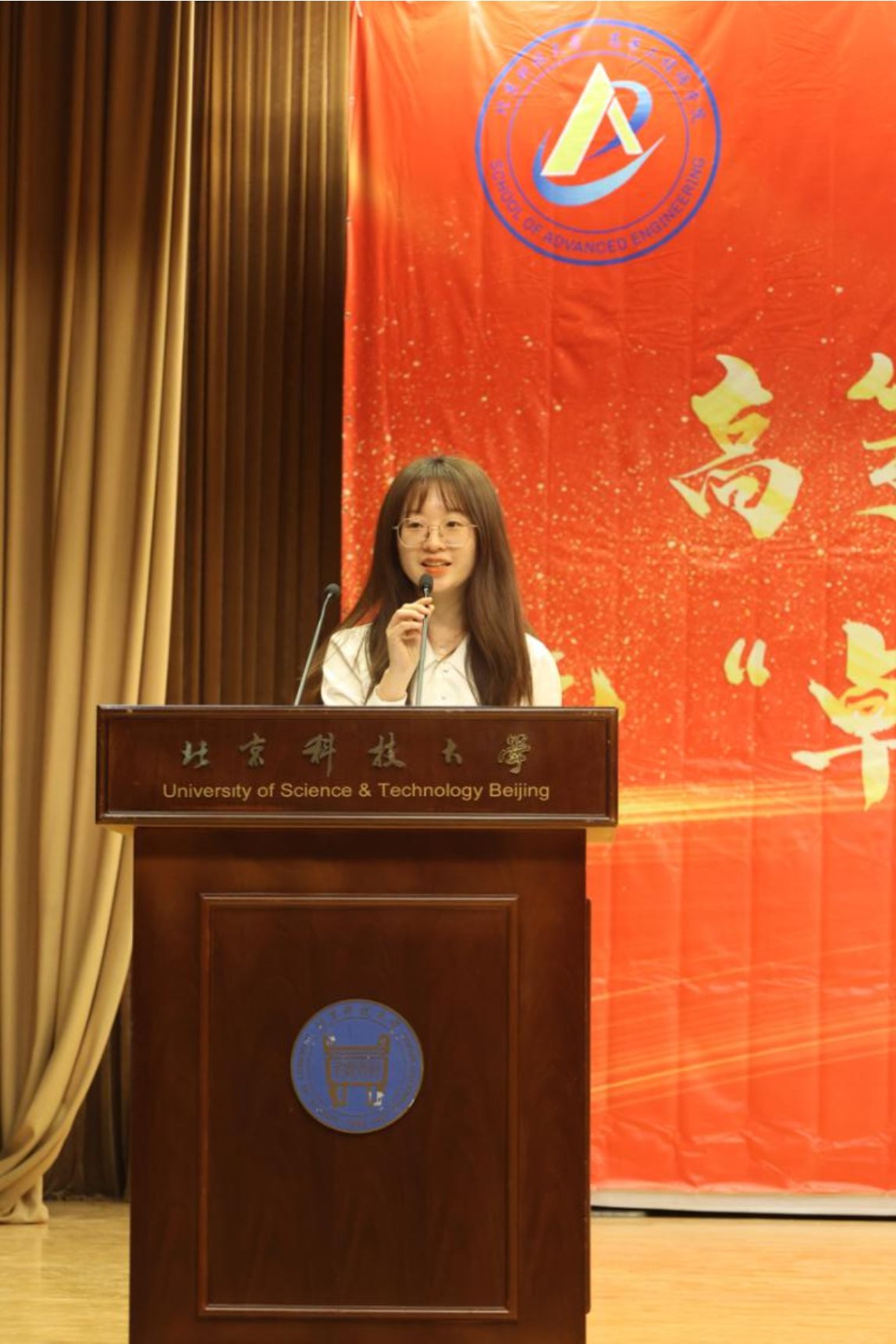 高工2201班许伊彤同学作为新生代表发言。她提到要做到明确目标、确定方向;合理规划、绝不拖延;积极展示、拥抱自信,并与同学们共勉。最后,她更加坚定地提出对于未来自己大学生活的目标:为成为具有为国奉献钢筋铁骨的高素质人才不懈奋斗。