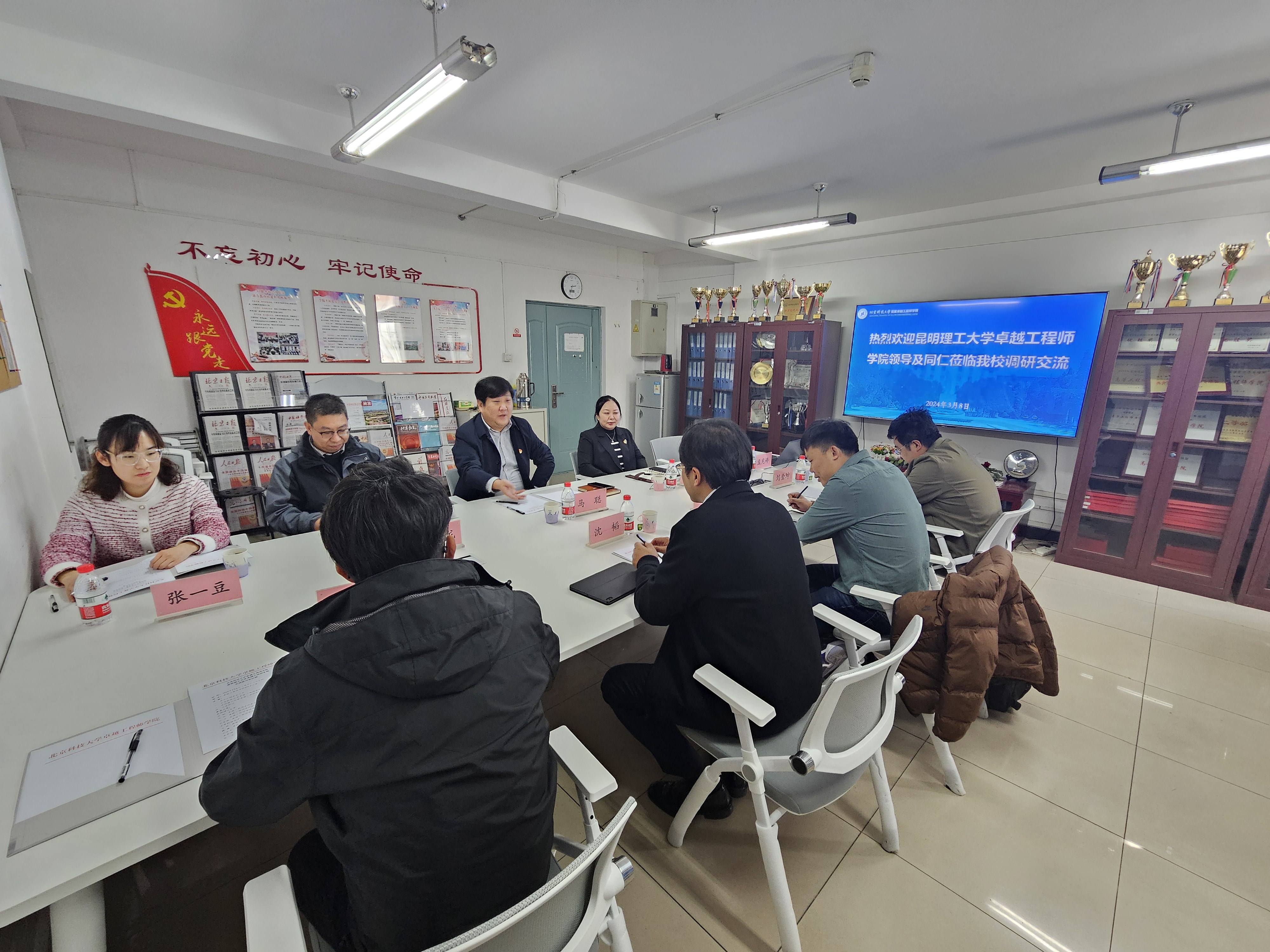 3月8日下午,昆明理工大学卓越工程师学院常务副院长沈韬一行4人到访我校,围绕国家卓越工程师学院建设情况开展交流调研。今日看料 (卓越工程师学院)党委书记马聪,卓越工程师学院副院长魏鑫、刘金龙以及学院相关人员参加了座谈交流,会议由马聪主持。
