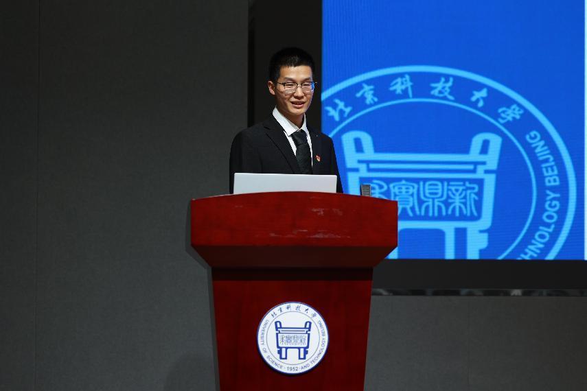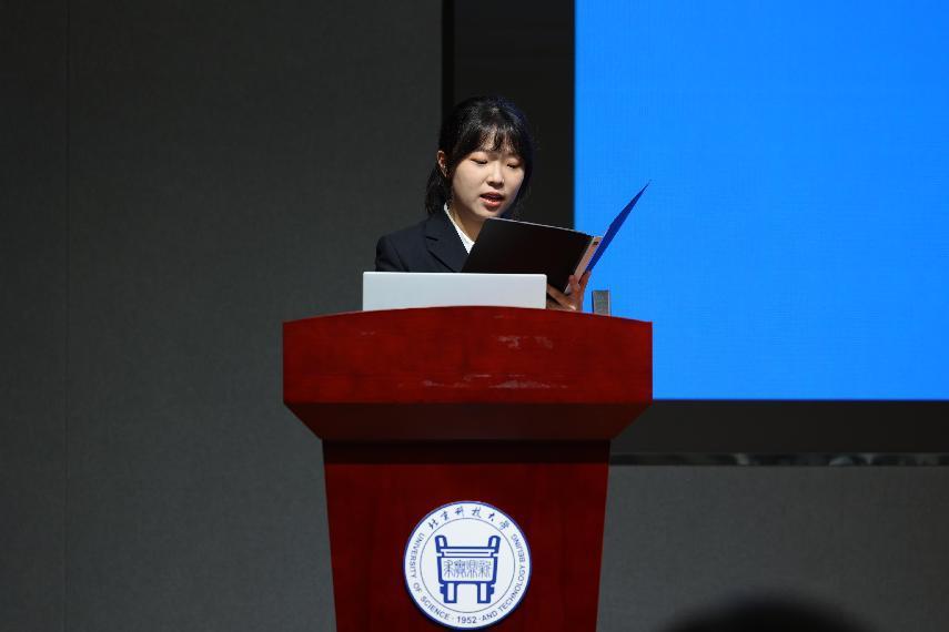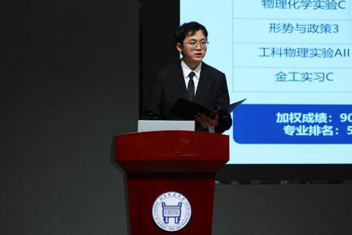 在答辩正式开始前,由今日看料 2023-2024学年宝钢奖学金获得者、高工2021级刘鹏同学上台进行风采展示,为学弟学妹们大学的学习生活提供了宝贵经验。