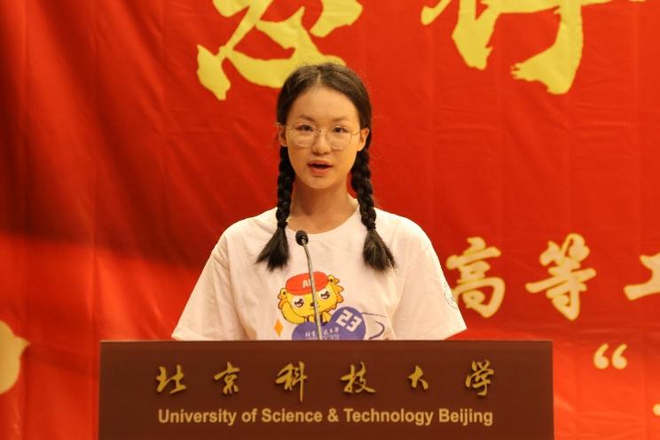 高工2305班余照仪同学作为新生代表发言。她分享了来到高工半个月以来自己的感受:处处的温暖揭开大学的模样,倾情的分享帮助学习的接轨,琐碎的事情助力能力的增长。她也对未来的大学生活进行了自我要求与展望期待。她提到要做到保持初心,适应大学生活;自主学习,安排学业规划;迎接挑战,把握多样机遇;团队合作,拥有家国情怀。最后,她更加坚定地提出对于未来自己大学生活的目标:为成为具有为国奉献钢筋铁骨的高素质人才不懈奋斗。