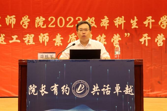苗胜军院长向大家介绍了学院十余年来以“产教融合、学科交叉、实践创新”为特色,紧紧围绕国家战略和行业发展需要,落实“卓越计划”、推进工科试验班建设的培养改革历程。同时,恰逢学校入选第二批国家卓越工程师学院建设高校重大喜讯来临之际,苗院长对新生们提出几点期望:擦亮爱党报国的底色、淬炼敬业奉献的精神、增进攻坚克难的本领、提高创新实践的能力。工程强国,科教兴邦,希望同学们不负青春,努力成长为堪当时代重任的新人。