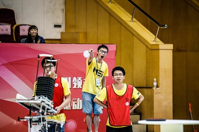 本届大赛共有148所高校报名,83所高校通过中期检查,近3000人参加。经过南(余姚)北(邹城)两个赛区的选拔赛,最终32支队伍进入全国总决赛。在北方赛区的比赛中,我校MEI机器人团队分别以11:2(完胜)、12:10(完胜)、17:17(完胜)、13:3(完胜)的成绩先后战胜天津工业大学、西安交通大学、华北科技学院和北京交通大学,6战4胜,拿下进入全国总决赛的入场券。在全国总决赛中,MEI团队又以20:8(完胜)、12:0(完胜)的成绩连拔东华大学、四川大学,挺进复赛。复赛16进8,对阵华南理工大学率先获得完胜。在8进4的比赛中,以5分之差不敌厦门大学,止步8强,获得一等奖。