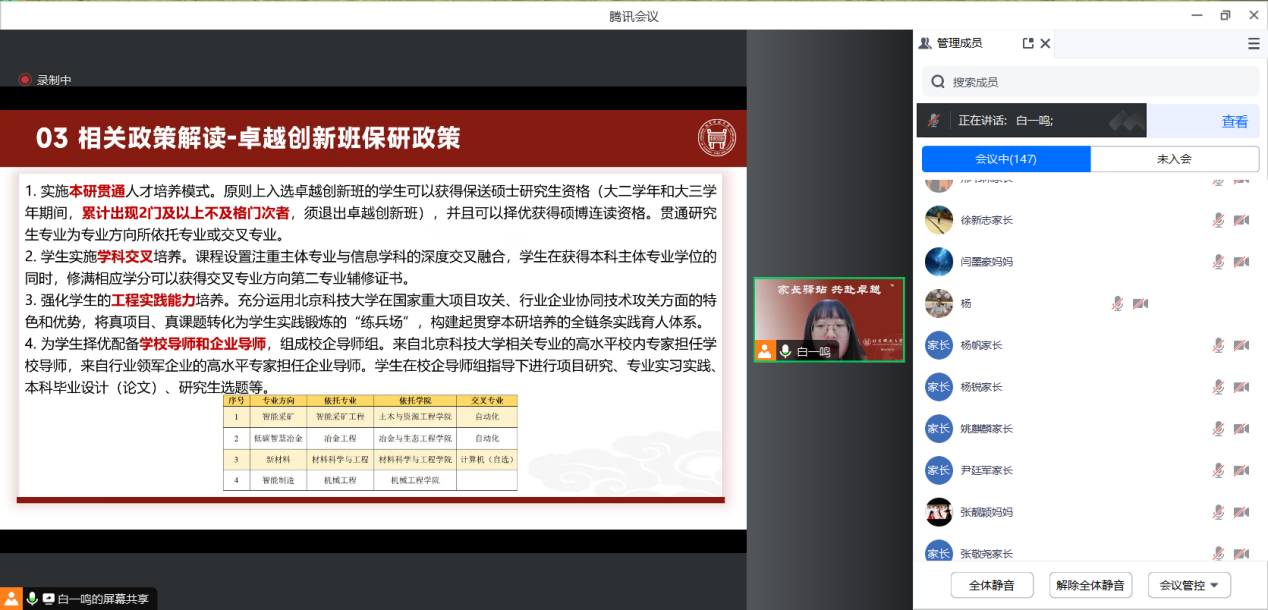本22级辅导员白一鸣围绕卓越工程师培养工作、学生大二学业规划、专业教育等家长们较为关心的内容进行介绍。