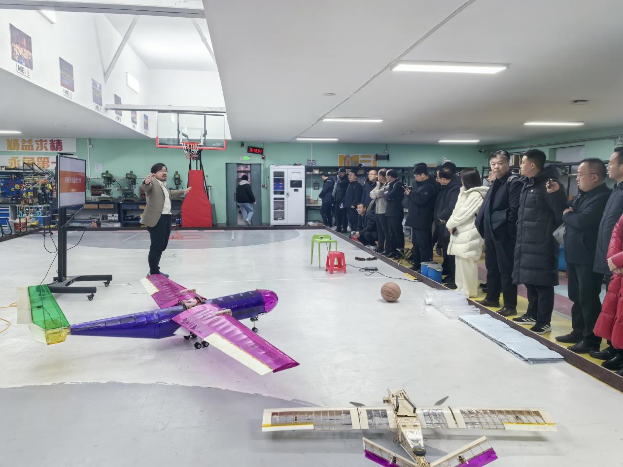 在机器人工程实践基地,张希琛老师介绍了基地发展历程、指导赛事、实验室建设与管理、课赛结合、对外交流,展示了多学科交融下的机器人与航模技术的创新成果,交流了人工智能与机器人、航模等技术的发展动态。
