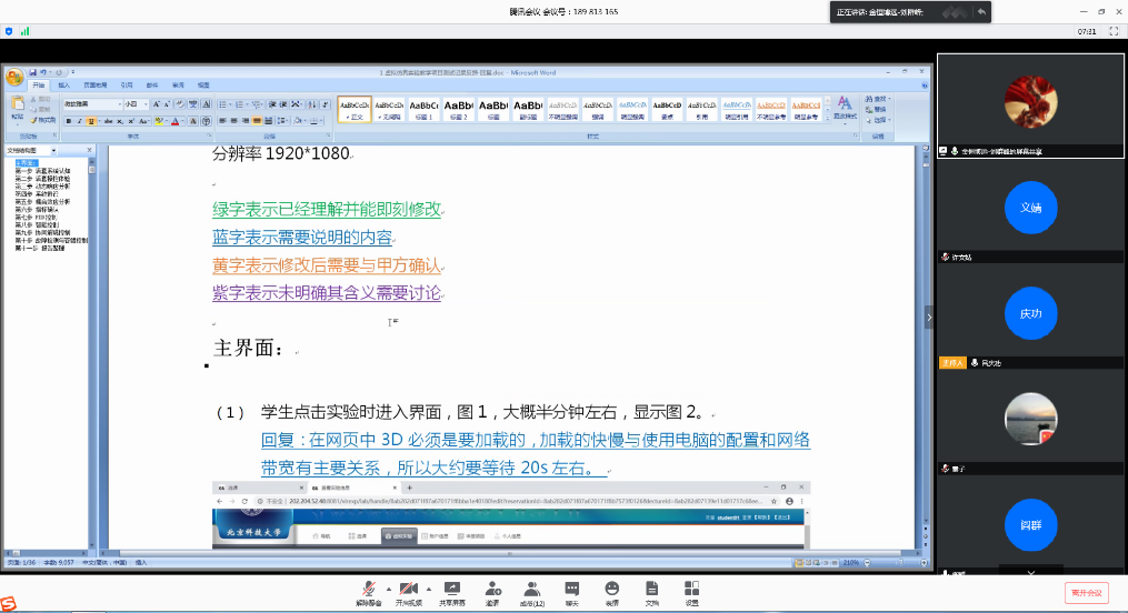 该项目于2020年4月下旬完成第一轮上线,经自动化专业教师试用并提出修改意见后,于5月上旬完成第二轮上线。本次会议主要针对第二轮上线后自动化专业教师和虚拟仿真平台教师提出的100多个问题和意见进行讨论,并对项目下一步实施和教学应用做出了安排。项目负责人李擎对自动化学院专业教师团队、虚拟仿真平台管理团队和公司技术开发团队的艰苦努力和工作成效给予了肯定,希望大家继续努力,尽快完成第三轮上线并实现学生远程登陆学习。自动化学院童朝南教授一直深度参与项目开发工作,学校网络中心在项目网络环境构建中也给予了大力支持。