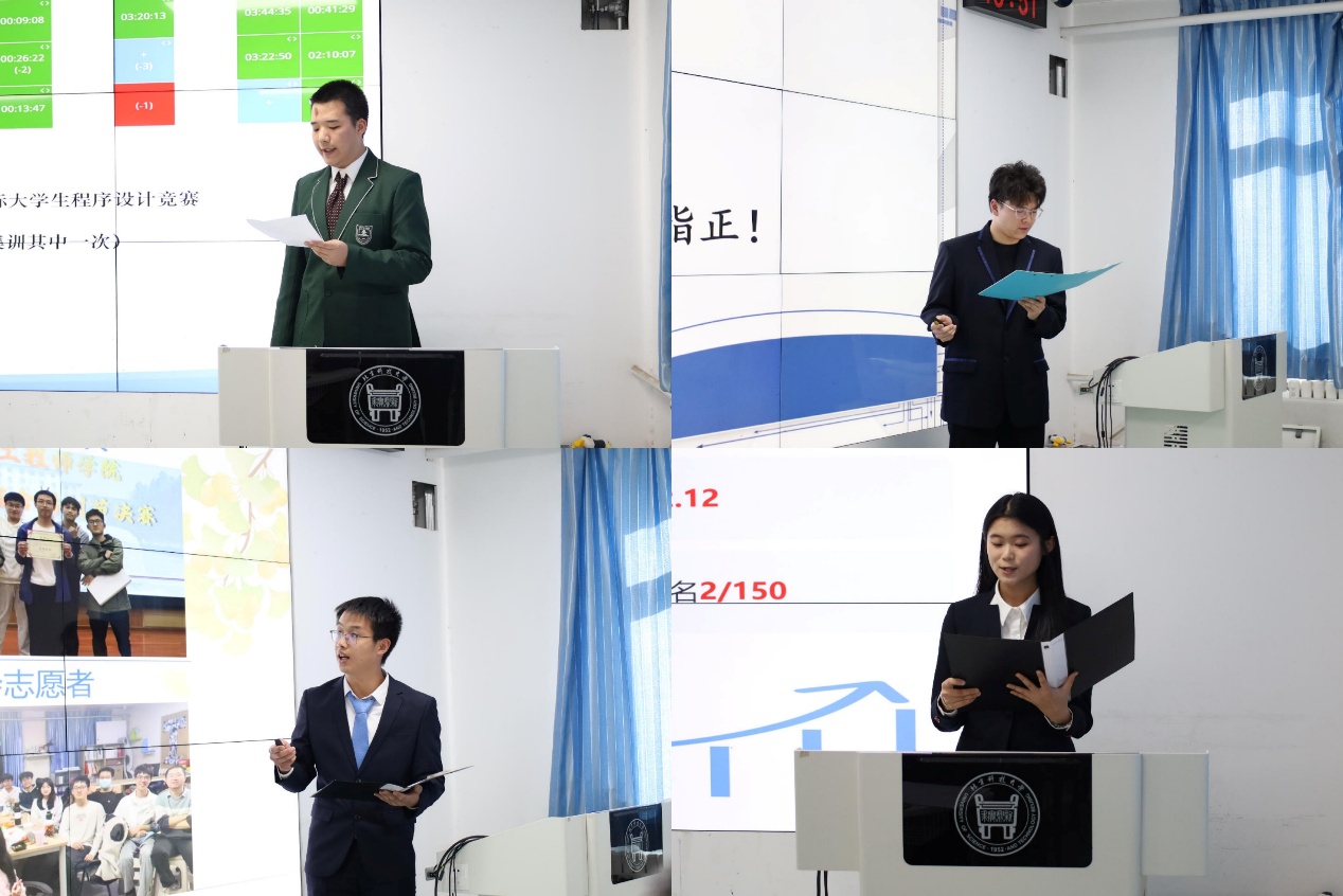 答辩环节开始后,答辩选手依次登台,围绕学业成绩、学生工作、科研竞赛、师生互动及日常生活等维度,系统地呈现了上学期的成长轨迹与阶段收获。评委们对答辩内容进行针对性提问、专业点评与建设性指导,在互动中深化育人实效。