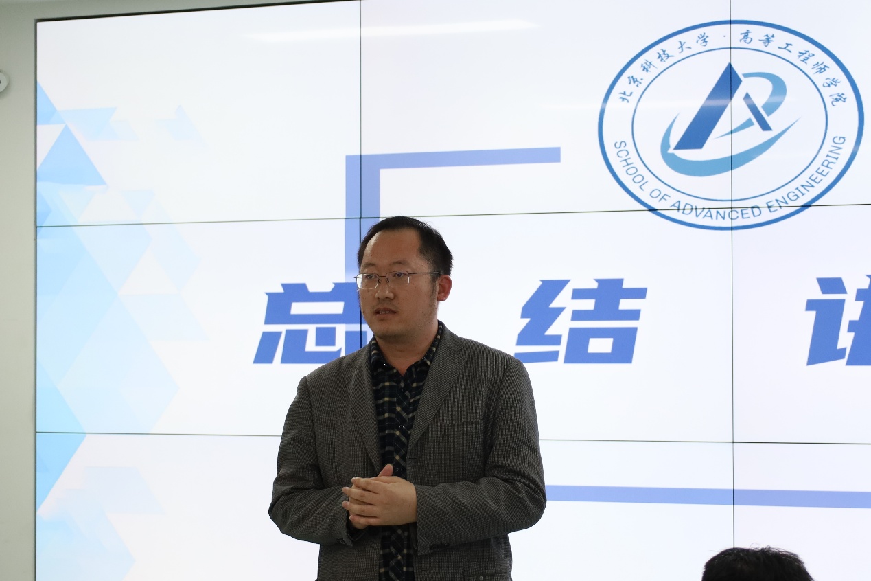 刘征建作总结发言,他向莅临指导的评审老师致以诚挚感谢,并对答辩学生取得的优异成绩表示祝贺,同时勉励大家继续保持自信姿态、加强学习实践、提升答辩技巧,在未来的学习生涯中始终坚守理想信念,追求全面发展,努力打造卓越工程师特色标签。
