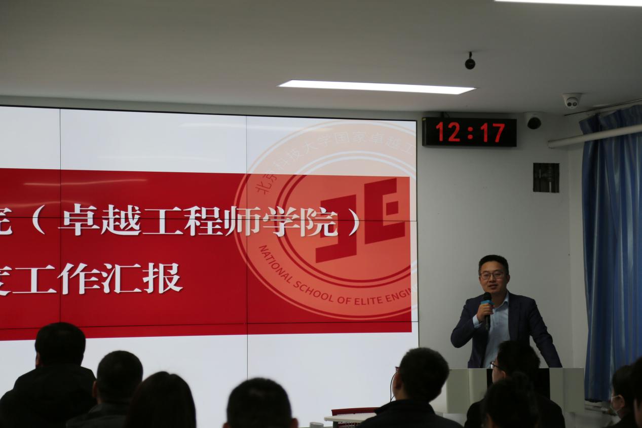 首先张海君院长围绕2024年度学院建设、人才培养、基地建设、师资队伍与师德建设、党建廉洁与安全稳定以及学院财务情况向全体教职工进行总结汇报,过去一年在学院党委的领导下,全体教职工凝心聚力办大事,卓越工程人才培养改革深入推进,工程训练中心基地建设面貌一新,学院建设取得了一系列丰硕成果。