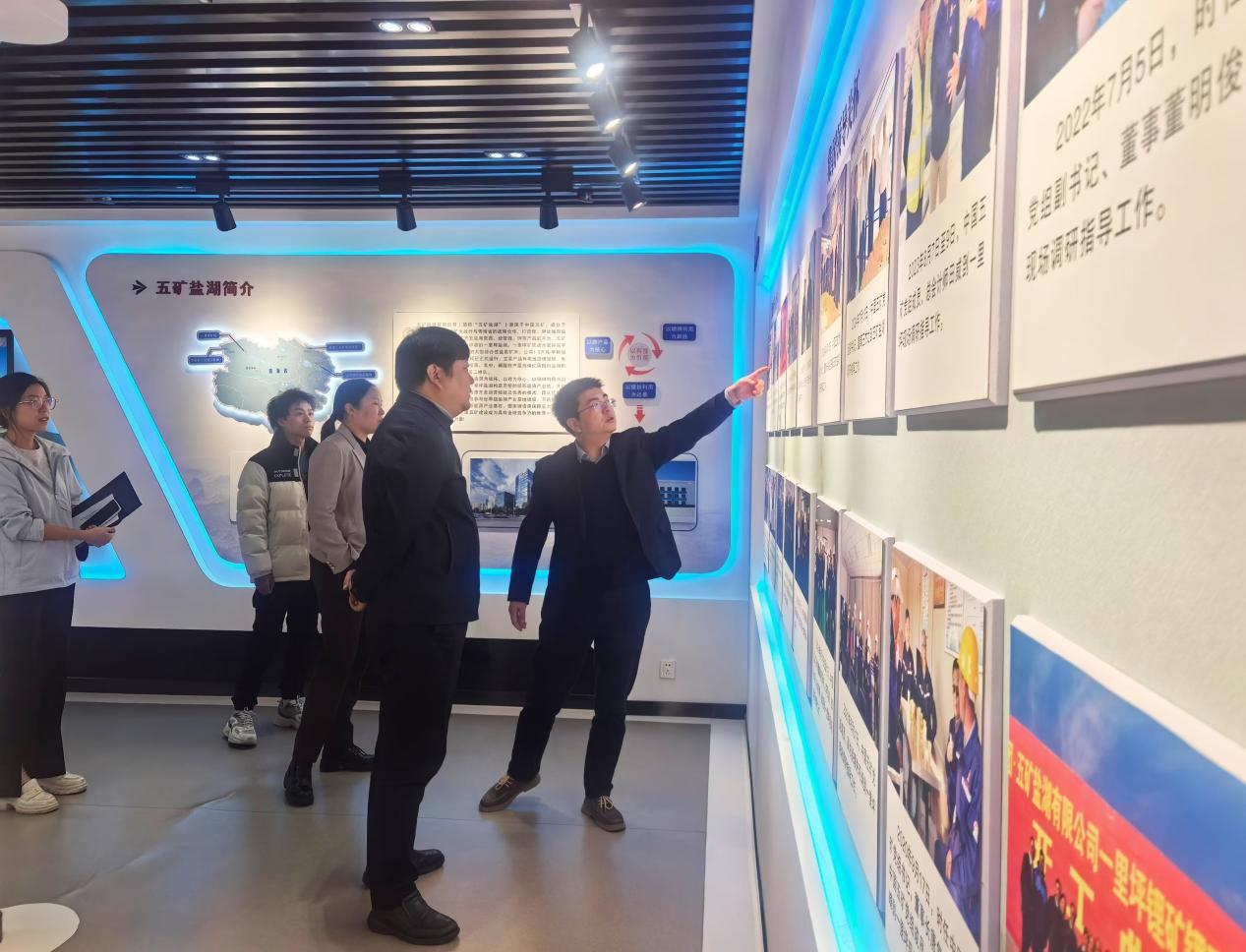 座谈会前,师生参观五矿盐湖展厅,近距离感受五矿盐湖立足青海省独具优势的盐湖资源,在“艰苦不怕吃苦、缺氧不缺精神、海拔高追求更高、风暴强意志更强”的盐湖精神影响下,推动盐湖资源绿色高效循环开发,加强我国钾锂资源的保障能力,为中国式现代化建设贡献力量的使命担当。