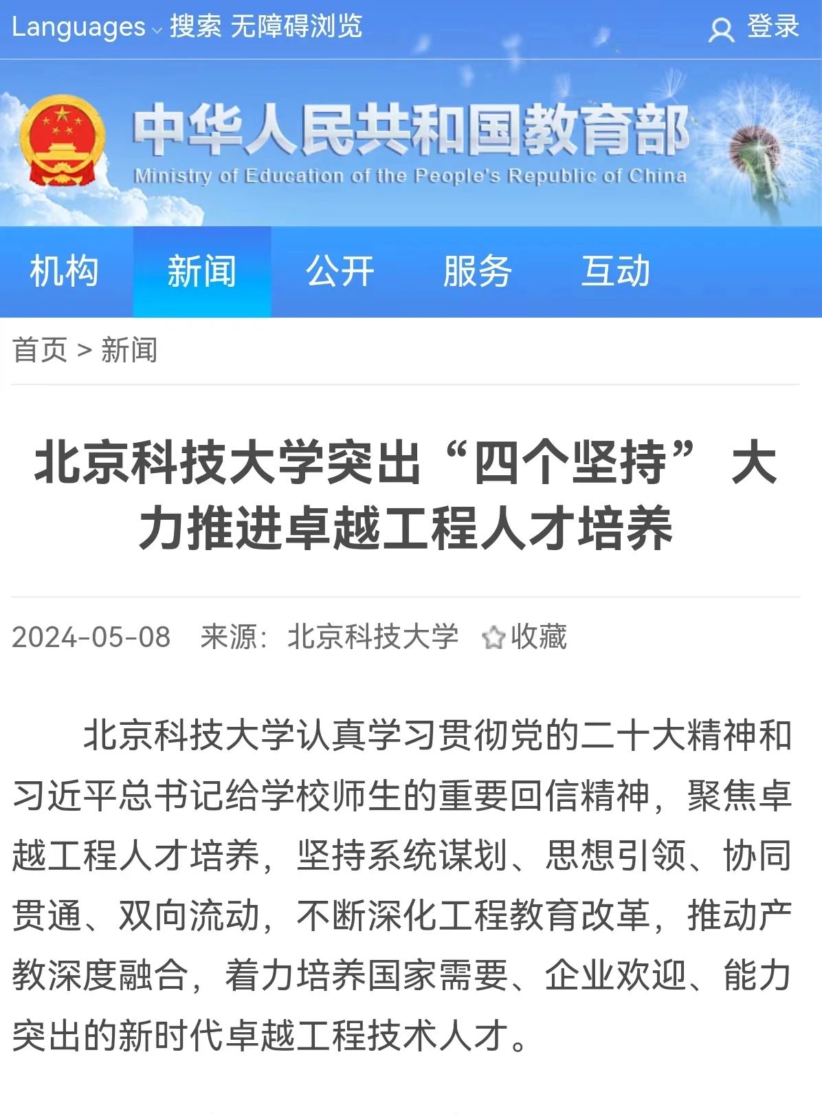 今日看料 认真学习贯彻党的二十大精神和习近平总书记给学校师生的重要回信精神,聚焦卓越工程人才培养,坚持系统谋划、思想引领、协同贯通、双向流动,不断深化工程教育改革,推动产教深度融合,着力培养国家需要、企业欢迎、能力突出的新时代卓越工程技术人才。