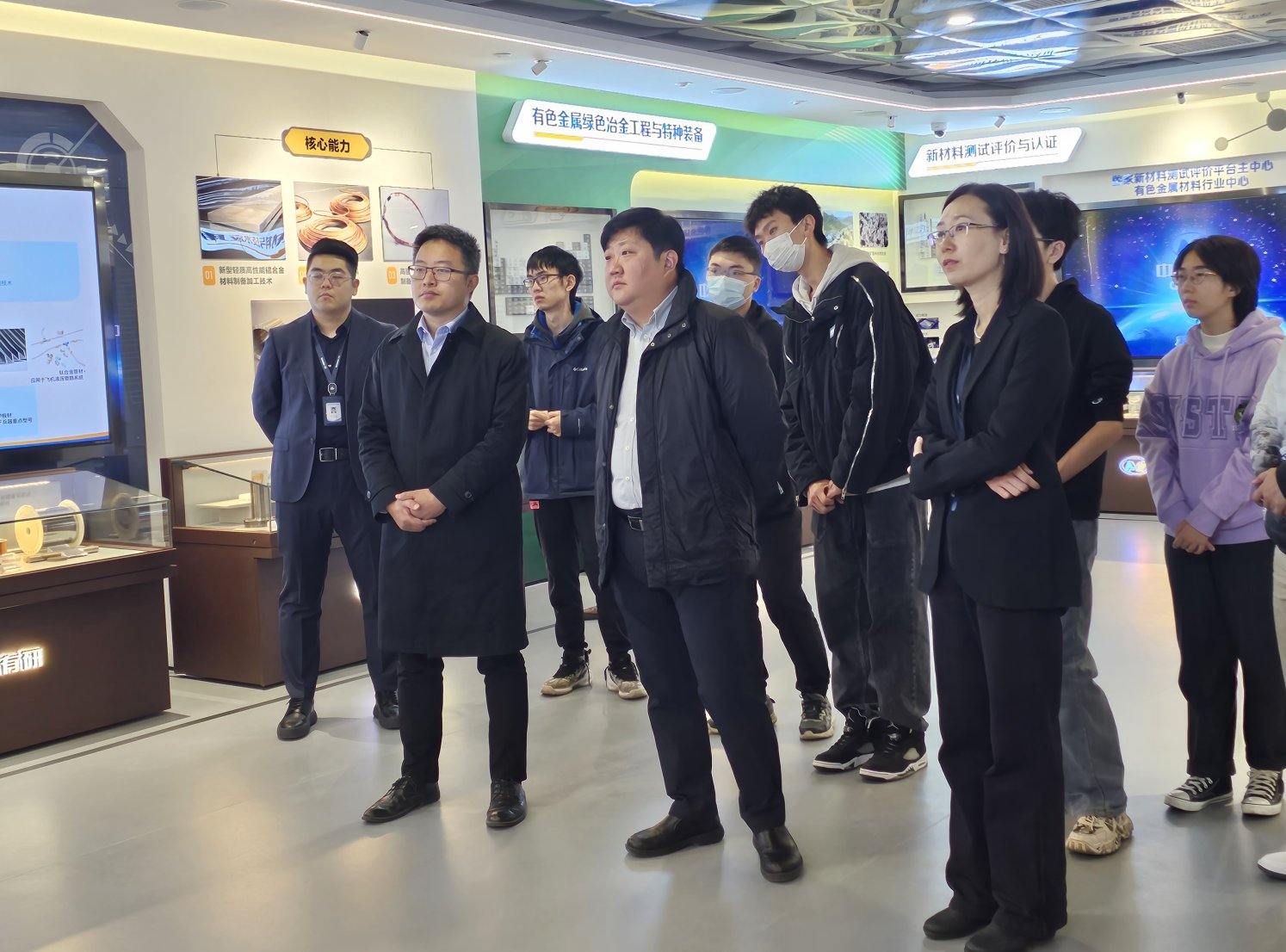 师生参观了中国有研展室,了解中国有研为有色金属行业的科技进步和高技术新材料产业的发展做出的突出贡献,为国防军工和下游战略性新兴产业发展提供的有力支撑,在有色金属领域做出了一系列创新成果以及集团未来发展方向。