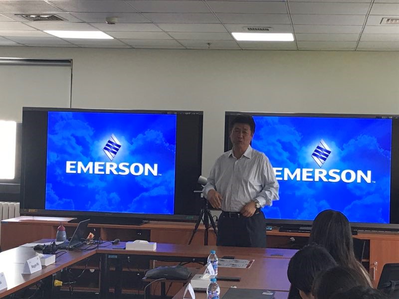 教学副院长赵志毅教授,电子技术实习基地主任周珂老师的带领下,前往艾默生自动化流体控制(北京)有限公司进行生产实习面试及企业发观。本次活动共分为前期了解介绍、英语测试、厂区参观、圆桌面试四部分,由艾默生HR王辉主持。