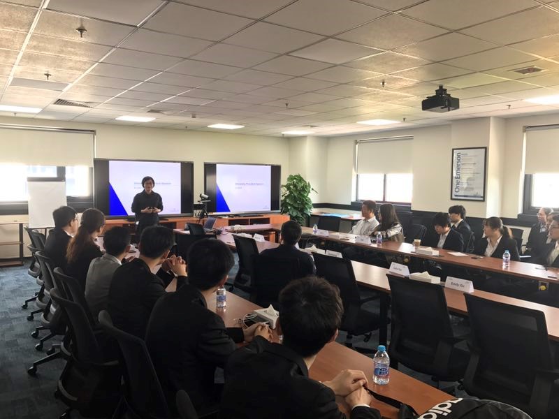 随后,艾默生运营总监李凯带领同学们进一步了解了艾默生的工作内容,组织结构与艾默生中国所获得的殊荣。并着重向同学们介绍了BMMC。