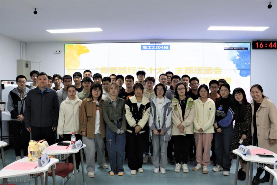 2023年3月7日下午,高工2204班“青春践行二十大”主题班团会暨“我的成长平衡”新生成长对话课在高工楼307教室举办。学校副校长王鲁宁、高工学院党委副书记刘娜与2204班全体同学共同参会,班团会由高工22级辅导员白一鸣主持。