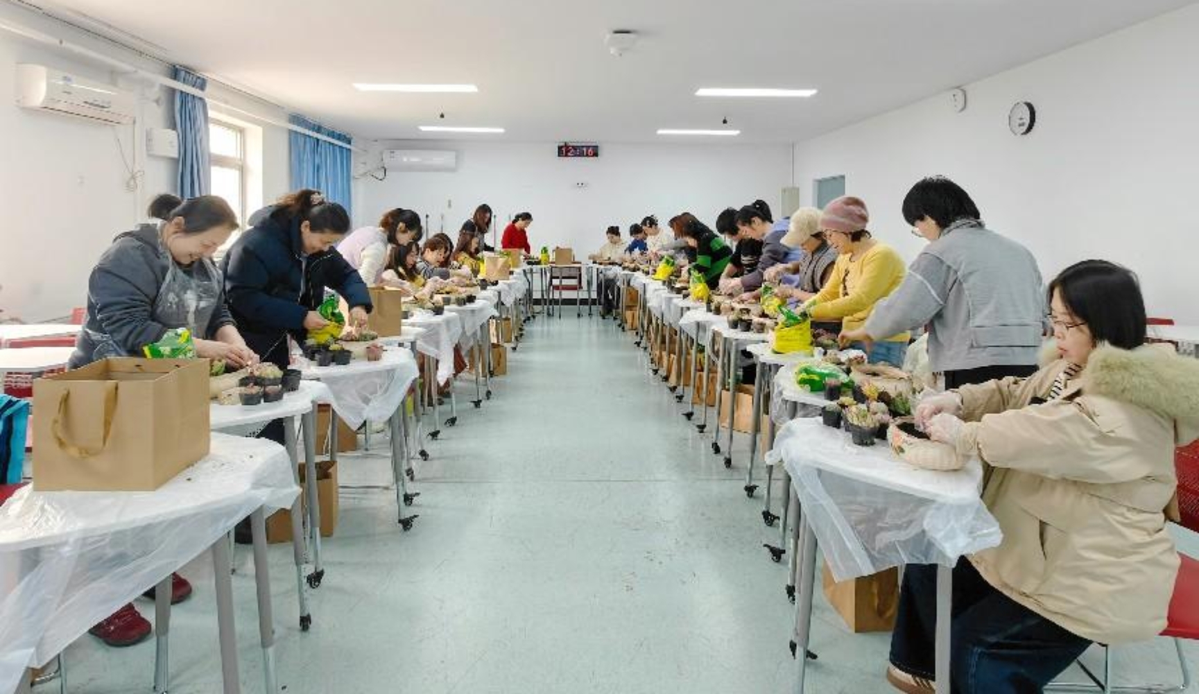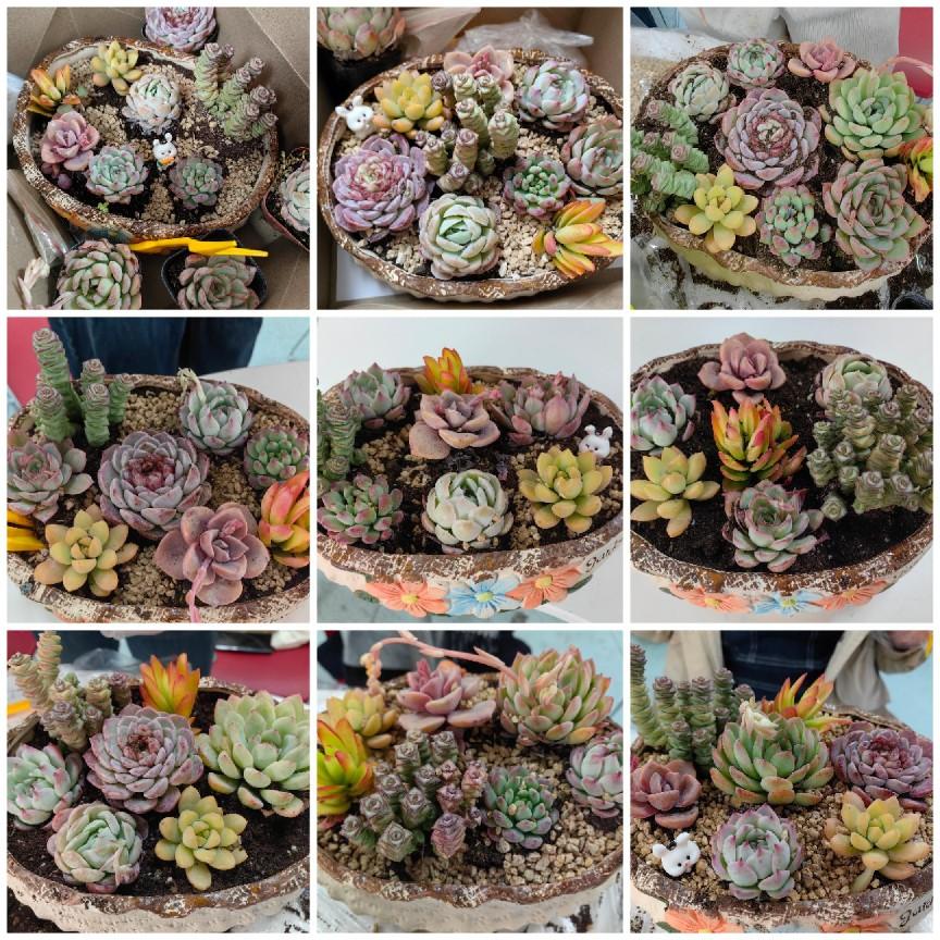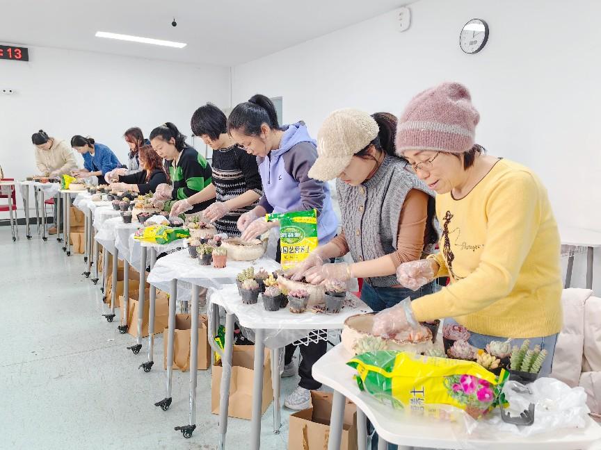 女教职工们齐聚一堂,化身“园艺设计师”,从选材搭配到填土栽种,充分发挥想象力和动手能力,以陶艺花盆为画布,将形态各异的萌态多肉、小石子、卡通摆件等元素巧妙结合,打造出独一无二的“迷你花园”。
