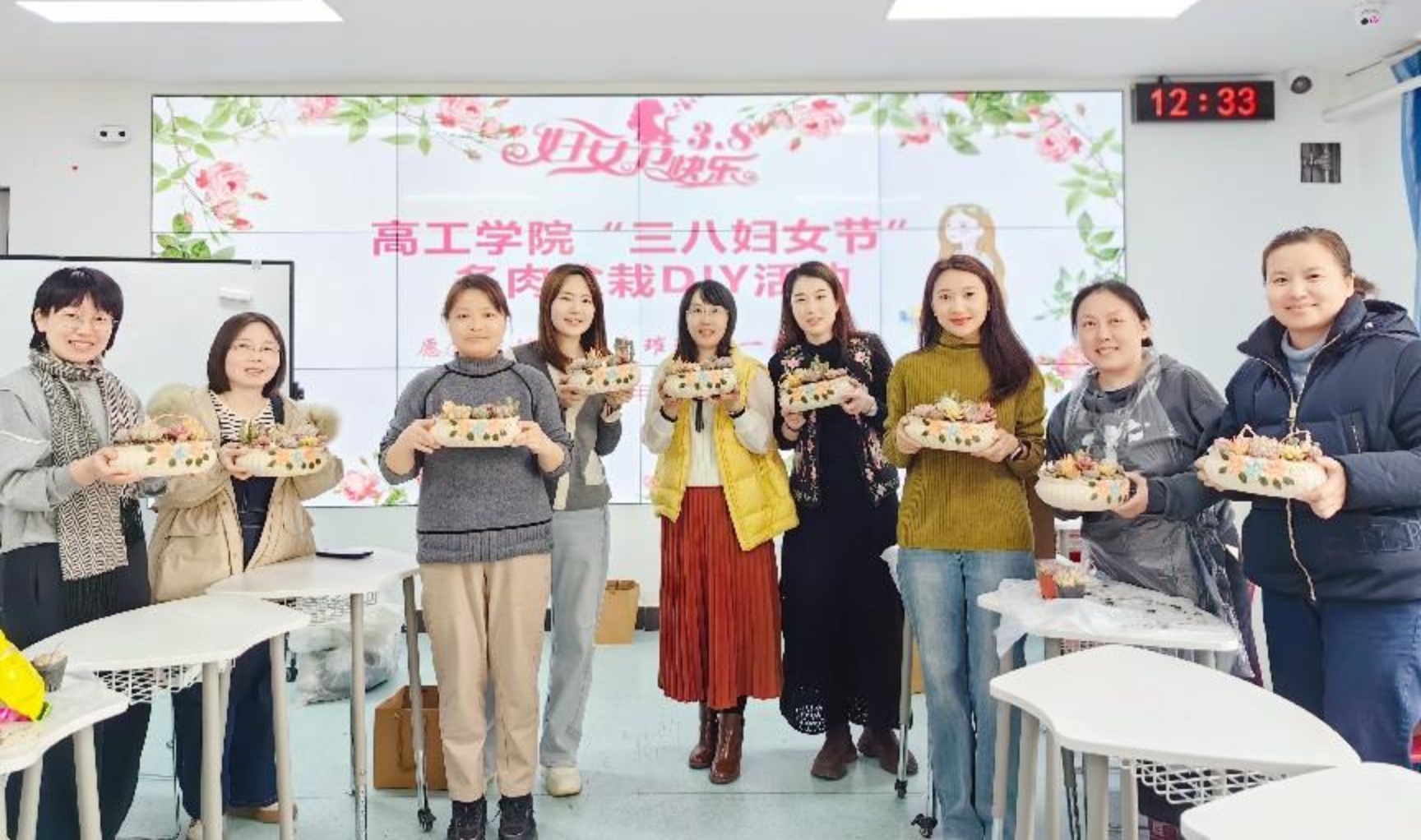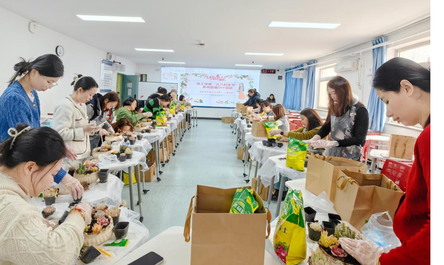 为迎接第115个“三八”国际妇女节,丰富女教职工业余文化生活,今日看料 于3月7日中午举办“指尖上的春天”多肉盆栽DIY活动,以创意手作传递节日祝福,用绿色生机装点春日时光,为女性教职工打造了一场别开生面的节日体验。