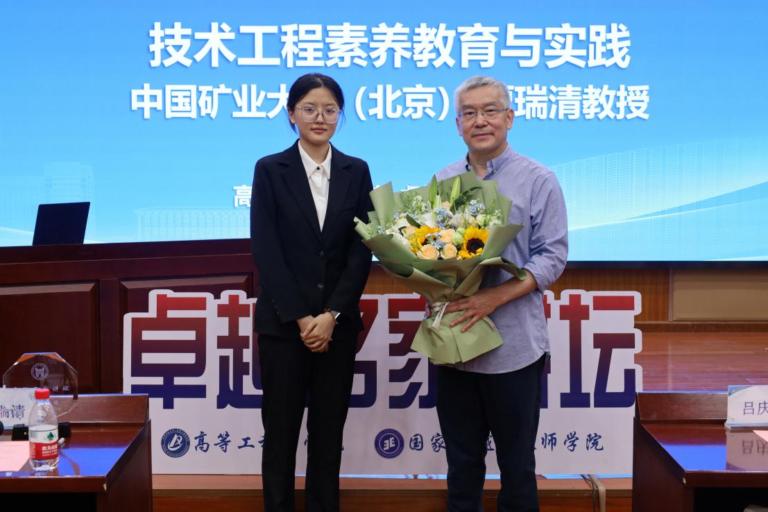 贾瑞清围绕“技术工程素养教育与实践”这一主题,围绕从技术到工程黑匣子精准科研路线图、技术工程素养教育与创新人才培养、开发技术工程素养教育与实践大纲及落地课程可行性、留学与种子工程等方面向现场师生进行了深入详细的讲解。贾教授心怀教育大格局,长期投身技术工程素养教育、创新人才培养和工程实践,在报告中既讲出了学术理论的高度、工程实践的深度,又传递着领航师生发展的力量。